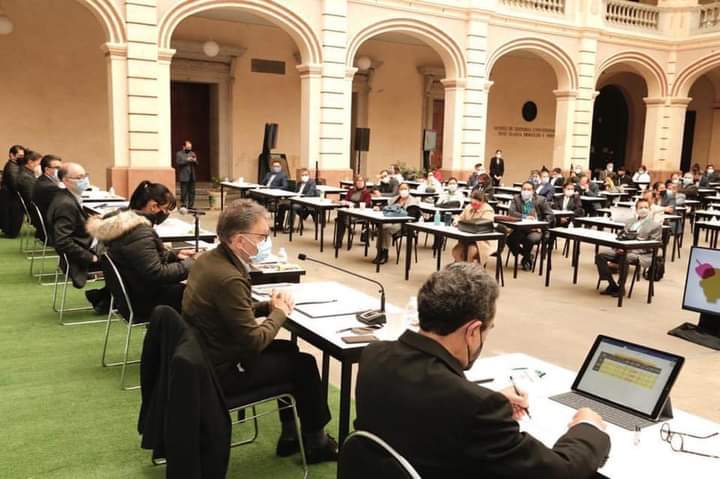 En el Patio del Centenario del Edificio de Rectoría, donde con estrictas medidas sanitarias, se llevó a cabo esta sesión del máximo órgano de gobierno de la Autónoma mexiquense, Alfredo Barrera señaló que la Administración 2017-2021 está comprometida con el cumplimiento de las necesidades de la comunidad universitaria, así como el retorno seguro de los universitarios a su quehacer cotidiano.
