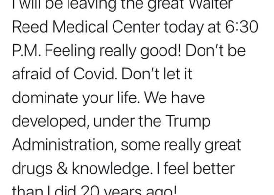 Saldré del gran Walter Reed Medical Center hoy a las 6:30 P.M. Sintiéndome muy bien! No le tengan miedo al