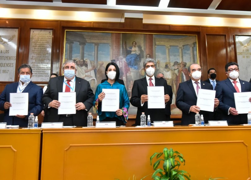 Lo anterior, durante la entrega, por parte del Secretariado Técnico para el Análisis y Estudio de la Reforma Constitucional y el Marco Legal del Estado de México, del protocolo de investigación a los tres poderes del estado representados por el diputado Maurilio Hernández y la diputada Karina Labastida Sotelo, presidenta de la Directiva, así como Ricardo Sodi Cuellar y Ernesto Nemer Álvarez, presidente del Tribunal Superior de Justicia de la entidad y secretario general de Gobierno, respectivamente, con lo que inició formalmente el proceso para la elaboración de una nueva Constitución.