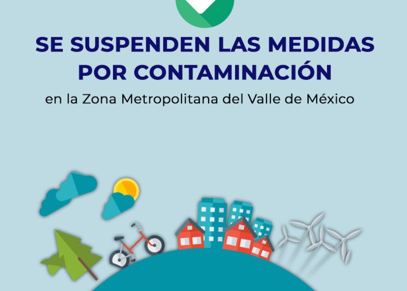 La Comisión Ambiental de la Megalópolis (CAMe) informa que se suspenden las medidas establecidas por contaminación en el Valle de México, ya que a las 20:00 horas se registró un valor máximo de 56 ppb de concentración horaria normada de ozono, en la estación Pedregal, en la alcaldía Álvaro Obregón.