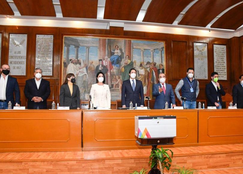 A través de la presidenta de la Mesa Directiva, la diputada Karina Labastida Sotelo, y del presidente de la Junta de Coordinación Política (Jucopo), el diputado Maurilio Hernández González, las diputadas y diputados de la LX Legislatura recibieron la propuesta de Paquete Fiscal 2021, que prevé un presupuesto de 307 mil 983 millones de pesos, el cual deberá ser aprobado a más tardar el próximo 15 de diciembre.