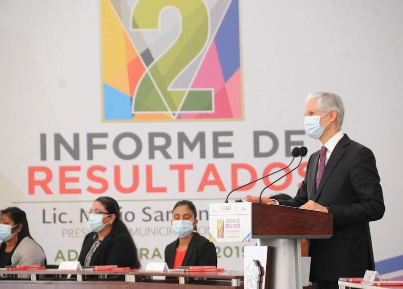 En el mensaje que dirigió durante el Segundo Informe de Resultados del Alcalde de Villa Victoria, Mario Santana Carbajal, Del Mazo Maza enfatizó que la sociedad aún enfrenta una situación compleja en los ámbitos económico y de salud, a causa de la pandemia, sin embargo, destacó que el trabajo responsable y la preparación que se ha hecho a lo largo de los últimos meses, permitieron fortalecer el sistema de salud del Edoméx, con el trabajo de médicos y enfermeras, para atender a todas las personas que han requerido atención médica.