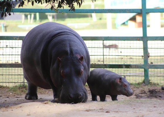 Trabajan médicos veterinarios del Parque en los cuidados del hipopótamo nacido hace cinco meses en sus instalaciones. El Gobierno del