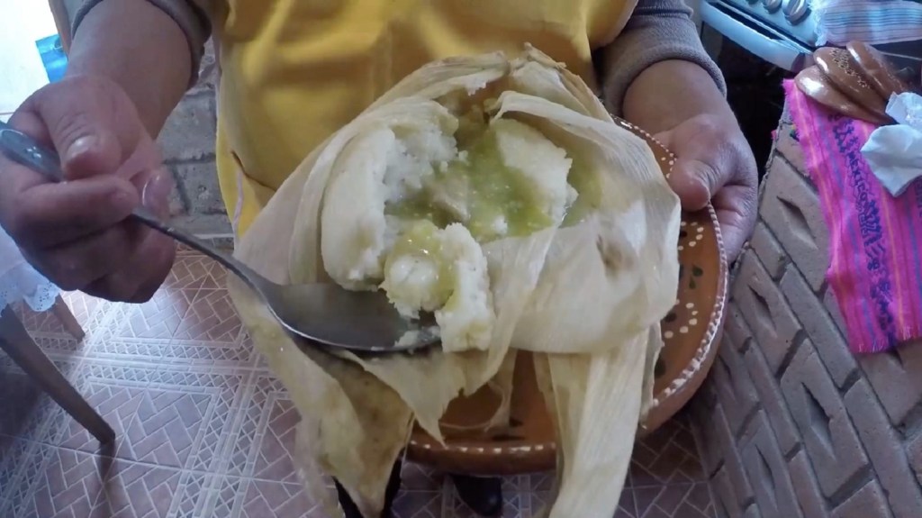 Por ello, Turismo en un Click 3.0 entró hasta la cocina de Antonia Díaz Reyes, originaria de la comunidad de Tepexoyuca, quien paso a paso explicó el proceso de preparación de los tradicionales tamales de ollita.