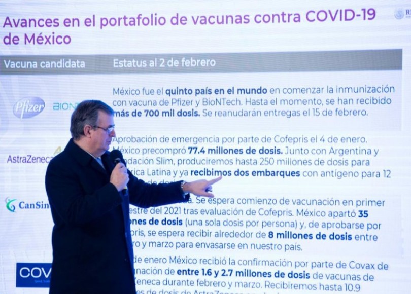 Informó que el 29 de enero México recibió la confirmación por parte de Covax de la asignación de 17.2 millones de dosis de AstraZeneca, por lo que el país recibirá entre 6.4 y 10.9 millones de dosis en el primer semestre de 2021.