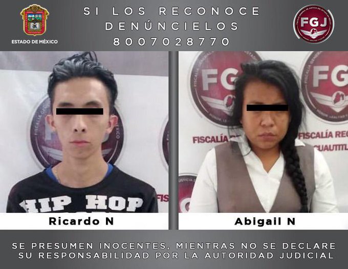 Los detenidos fueron identificados como Ricardo “N” de 31 años de edad y Abigail “N” de 33 años, esta última quien laboraba como Ejecutiva de dicha institución bancaria, en el municipio de #Huehuetoca. Su detención fue realizada derivado de un trabajo de investigación de campo y gabinete realizado por esta Institución luego de que el pasado mes de febrero se tuvo conocimiento sobre el suicidio de un hombre en este municipio.