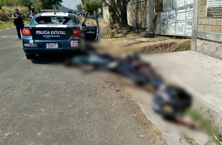 En el lugar de los hechos la FGJEM lleva a cabo las diligencias para el levantamiento de los cuerpos y la recopilación de indicios.