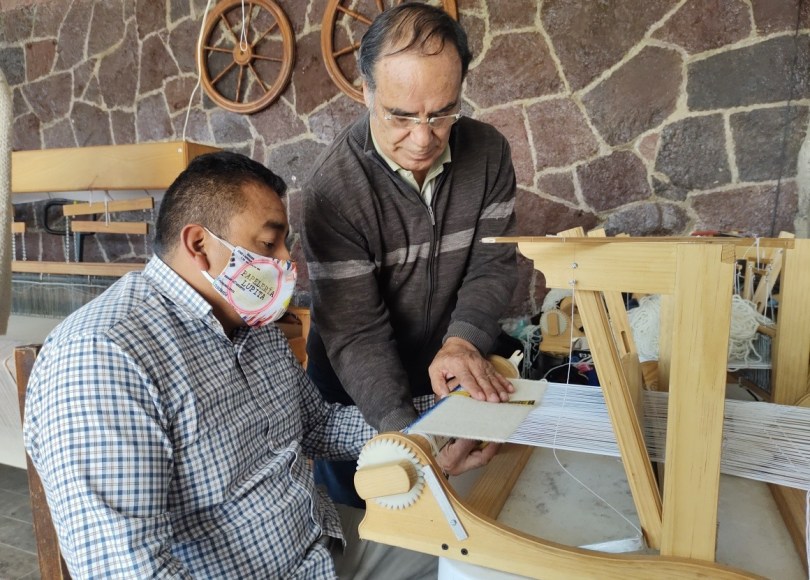 Las y los alumnos que toman clases aprenden desde lo básico, elaborando piezas pequeñas, los más avanzados dan como resultado a obras mayores como la producción de gabanes. Modesto Nava con paciencia y esmero les enseña a diseñar, preparar materiales, teñir y tejer.