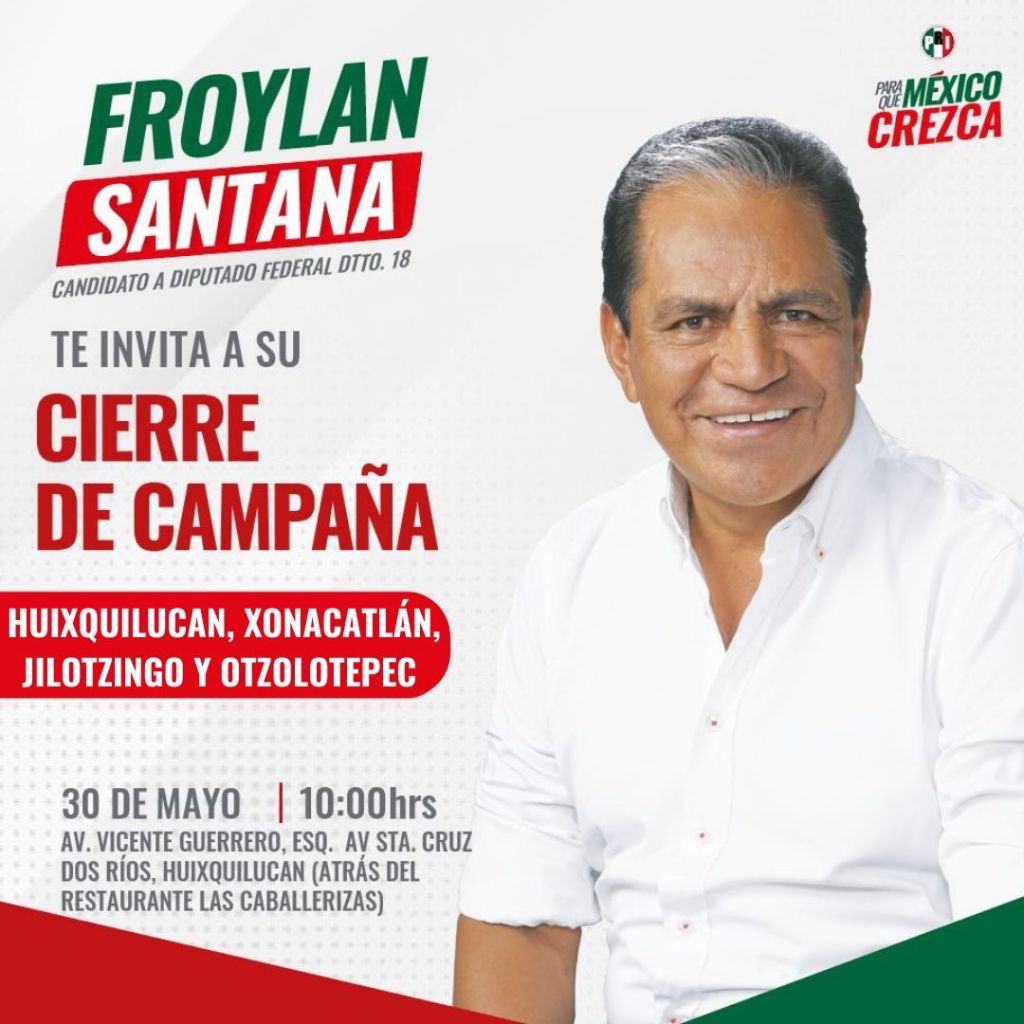 30/05/2021 ESTADO DE MÉXICO CIERRE DE CAMPAÑA DEL CANDIDATO FEDERAL, FROLAY SANTANA, POR EL PRI Publicado por Redacción Cierre de campaña del candidato a Diputado Federal #FroylanSantana, por el Partido Revolucionario Institucional. Compártir Haz clic para compartir en Facebook (Se abre en una ventana nueva) Facebook Haz clic para compartir en X (Se abre en una ventana nueva) X Haz clic para compartir en WhatsApp (Se abre en una ventana nueva) WhatsApp Relacionado