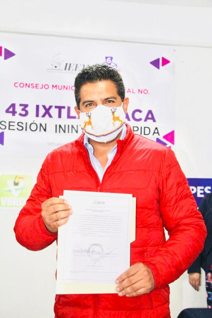 “El día de hoy estoy sumamente agradecido con todas las familias Ixtlahuaquenses, ya que hace unos minutos recibí por parte de la Junta Municipal 43 del Instituto Electoral Del Estado De México, la constancia de mayoría que me acredita como Presidente Municipal Electo de Ixtlahuaca”.