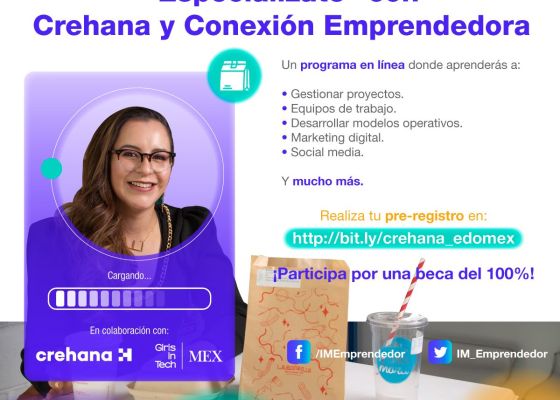 #CursosGratis Informan que el Instituto Mexiquense del Emprendedor, #Crehana y #GirlsInTech capacitarán de forma gratuita a emprendedoras, emprendedores y pequeñas