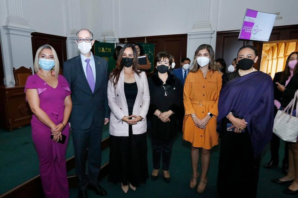 En el Aula Magna del Edificio de Rectoría, acompañado de la titular de la Secretaría de la Mujer del gobierno estatal, María Isabel Sánchez Holguín; la presidenta del Tribunal Electoral del Estado de México (TEEM), Leticia Victoria Tavira; la consejera de la Judicatura de la entidad, Fabiola Catalina Aparicio Perales, y la secretaria técnica del Observatorio de Participación Política de las Mujeres de la entidad, María Isabel Becerra Ambrosio; Barrera Díaz reiteró que la labor cotidiana de las mujeres en la administración pública, así como en la academia, enriquece y humaniza la vida del Estado de México.