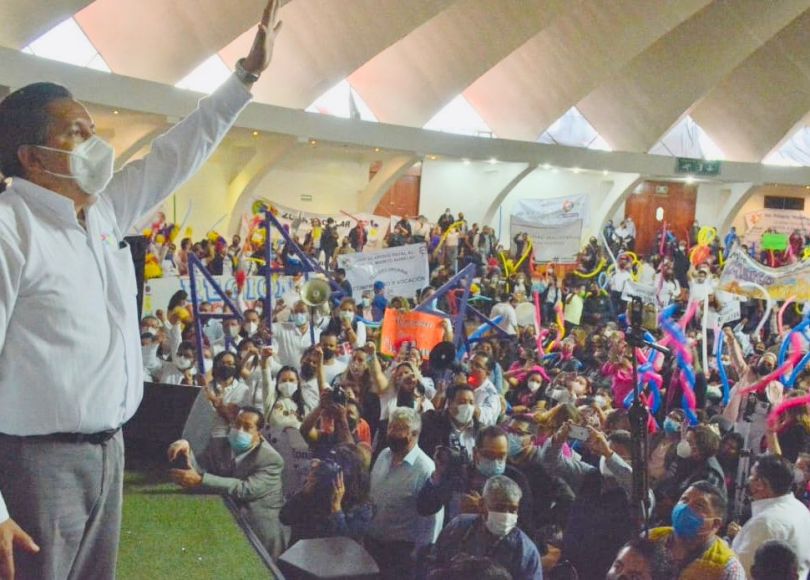 «Gracias maestras, gracias maestros por estar respaldando un extraordinario proyecto de unidad, de Unidad Sindical», expresó el candidato al iniciar su mensaje al magisterio.