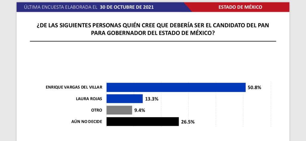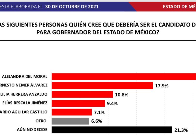 De acuerdo a esta empresa encuestadora, los perfiles más avanzados dentro de sus partidos políticos son Delfina Gómez, Alejandra del Moral y Enrique Vargas.