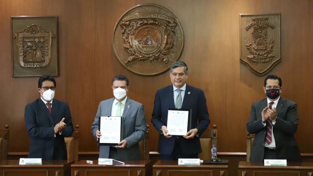 Toluca, Estado de México, miércoles 17 de noviembre de 2021.- En el transcurso de las próximas semanas la Universidad Autónoma del Estado de México (UAEMéx) se convertirá en un centro de paz, con la finalidad de promover este tipo de ambientes para los habitantes de la capital, especialmente mujeres niños y adultos mayores, objetivo principal de la firma de la Carta Compromiso entre el gobierno municipal de Toluca y la Máxima casa de estudios de la entidad.