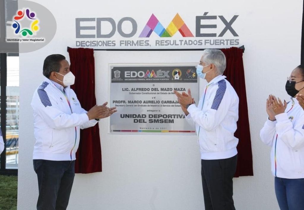 17 de noviembre de 2021 La Paz, Estado de México.- En el marco de la inauguración de la Unidad Deportiva del Sindicato de Maestros al Servicio del Estado de México (SMSEM) en la región sindical 7, Marco Aurelio Carbajal Leyva, Secretario General del SMSEM, solicitó el apoyo del Gobernador Alfredo Del Mazo Maza, para dar continuidad a los procesos de basificación de plazas locales, así como la implementación de un programa emergente de vacunación contra COVID-19, para fortalecer el sistema inmunológico de los maestros, en el contexto del regreso a clases presenciales.