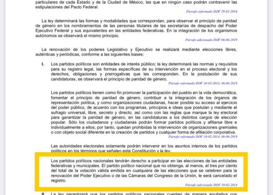 La Sala Superior del Tribunal Electoral del Poder Judicial de la Federación confirmó la determinación del INE que cancela el registro de 3 partidos políticos: PES, Fuerza por México y Redes Sociales Progresistas por no alcanzar el 3% de la votación en junio pasado.