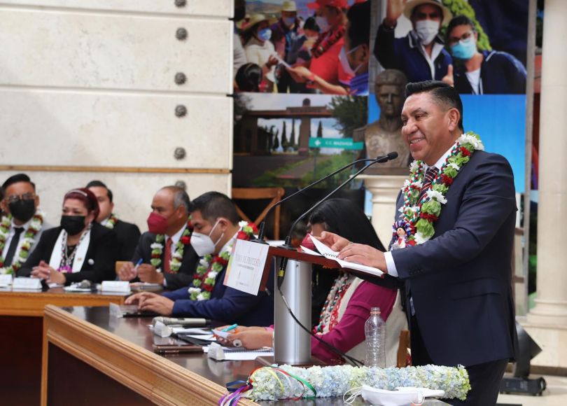 Al tomar protesta como alcalde para el periodo 2022-2024, Javier Jerónimo Apolonio, sostuvo su agradecimiento al estadista y municipalista Alfredo del Mazo Maza a quien le declaró su lealtad institucional y estar a disposición de coordinar trabajos para que le vaya bien a esta tierra mazahua.