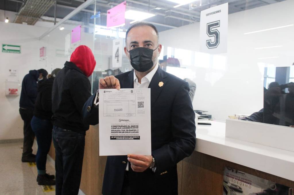 El alcalde de Metepec, Fernando Flores Fernández, acudió la mañana de este lunes a realizar el pago de sus obligaciones fiscales en las cajas recaudadoras del edificio administrativo de la avenida Estado de México; en el lugar, el mandatario, escuchó a las y los contribuyentes a quienes agradeció el pago tanto de predial como por derechos de agua potable, condición que dijo, es fundamental para impulsar la prestación de servicios públicos de calidad.