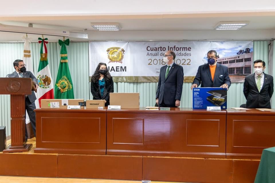 Durante el informe se hizo entrega del equipo para el Laboratorio de Digitalización, fundamental para el desarrollo profesional del estudiantado de la Licenciatura en Ciencias de Información Documental que permitirá generar recursos propios mediante la creación de convenios para la digitalización documental.