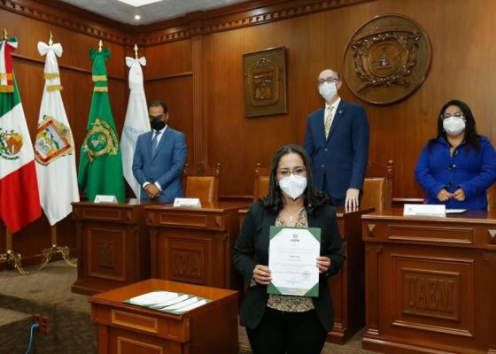 El rector de la UAEMéx, Carlos Eduardo Barrera Díaz, entregó 32 bases y 10 recategorizaciones a personal administrativo agremiado al SUTESUAEM