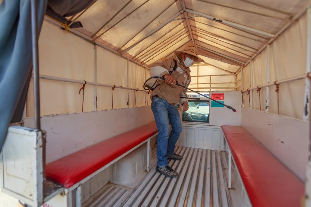 Desde este lunes personal del ayuntamiento se colocó en los accesos principales del municipio para sanitizar las unidades del transporte público y automóviles. En un segundo punto se instalo otro filtro en la entrada de la Presidencia Municipal, dónde se les pide a los ciudadanos usar el cubrebocas de forma obligatoria, además de proporcionarle gel antibacterial a toda la gente.