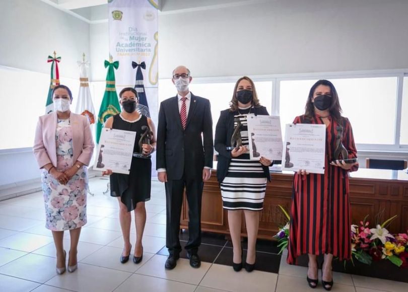 En este marco, otorgó la presea promovida por la Federación de Asociaciones Autónomas de Personal Académico de la institución (FAAPAUAEM) a la Mujer Académica Universitaria, en su versión 2022, a Miriam García García y Jackeline Valentine Dávila Montiel, profesoras adscritas al plantel “Nezahualcóyotl” de la Escuela Preparatoria, así como a la maestra Jeny Álvarez Botello, adscrita a la Unidad Académica Profesional Cuautitlán Izcalli, por su trabajo académico dentro de la Máxima Casa de Estudios mexiquense.