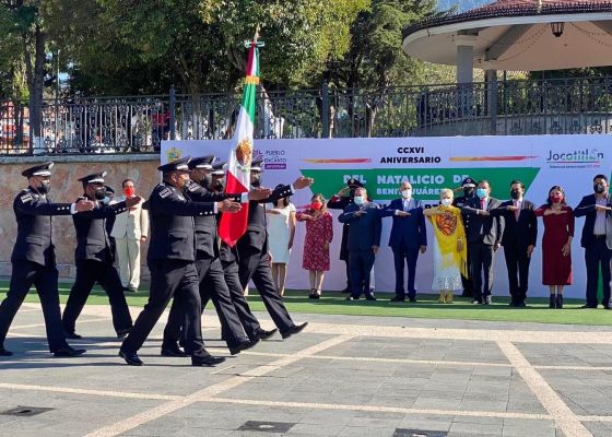 El Presidente Municipal de Jocotitlán, Jesús Cedillo González, encabezó el izamiento de bandera y la ceremonia cívica rindiendo honores al hombre de raíces indígenas que luchó por las libertades y la soberanía de México.
