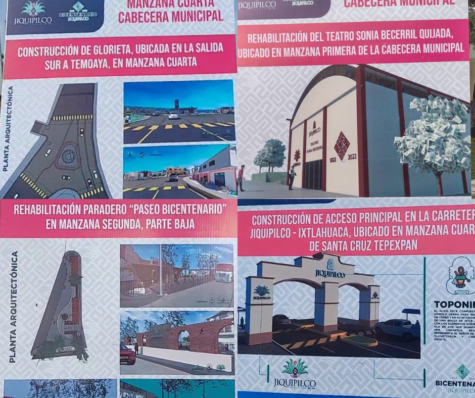 El Presidente Municipal de Jiquipilco, Felipe de Jesús Sánchez Dávila, en la búsqueda por remarcar la cultura propia de Jiquipilco y así conmemorar los doscientos años que cumple como municipio consolidado; dio inició a cuatro obras que enmarcarán este festejo: la “Construcción de la Glorieta del Tlachiquero” como elemento de identidad y bienvenida al Municipio de Jiquipilco; remodelación del Teatro «Sonia Becerril Quijada» con lo que el público general tendrá un mejor espacio de esparcimiento; inicio para los trabajos de remodelación del «Paseo Bicentenario» que se ubica en la entrada noreste de Jiquipilco, sobre la carretera hacia Naucalpan; y la construcción de los arcos de acceso en la parte límite de Jiquipilco con el municipio vecino de Ixtlahuaca.