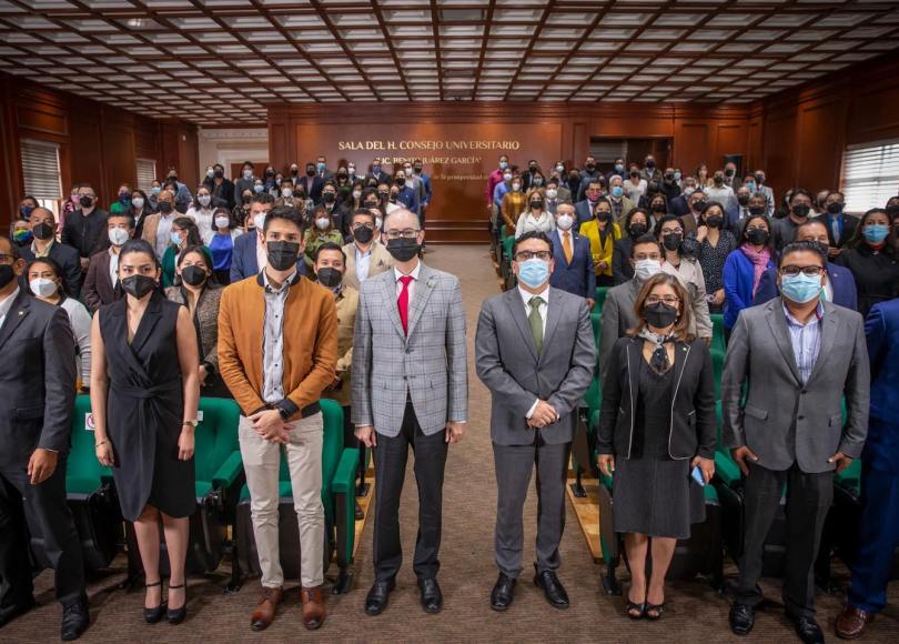 En la Sala de Consejo Universitario “Benito Juárez García” del Edificio de Rectoría, Barrera Díaz reconoció a las y los ganadores de una estancia o cátedra al definirlos como posgraduados deseosos de abrir nuevos senderos de desarrollo para la ciencia, para la UAEMéx y para la sociedad mexiquense.