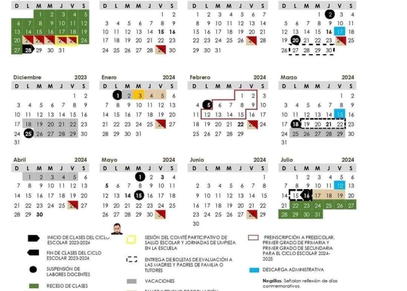 El Calendario Escolar 2023-2024 establece dos períodos vacacionales; el de invierno será del 18 al 29 de diciembre de 2023; y el de Semana Santa, del 25 de marzo al 5 de abril de 2024.