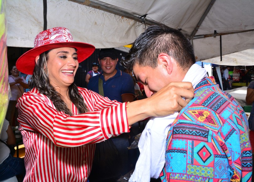 En medio de la festividad, Rodríguez tuvo la posibilidad de saludar a vecinos y comerciantes presentes en las inmediaciones de la feria, donde aprovechó para sentarse a disfrutar del tradicional mole junto a los simpatizantes que la acompañaban.