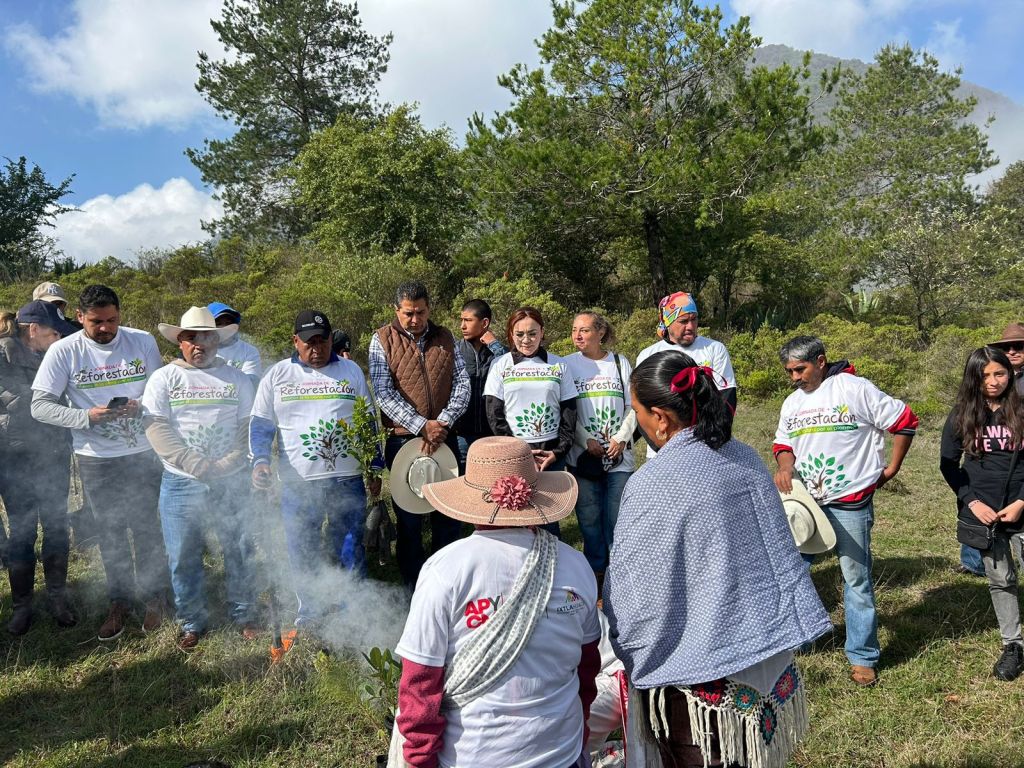 Luego de un hermoso ritual autóctono encabezado por el Jefe Supremo Mazahua, como gratitud y permiso a la madre tierra para realizar la faena, se inició con la siembra de 2 mil 700 pinos y fresnos en el paraje de Xhimboishi, perteneciente a la comunidad de Santa Ana Ixtlahuaca.