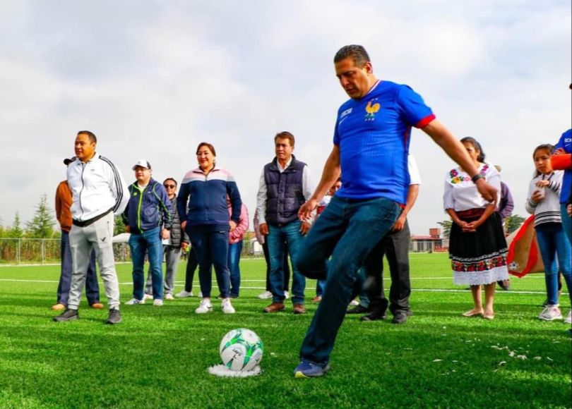 Paralelamente, el presidente municipal entregó la primera cancha de futbol soccer profesional fuera de la cabecera municipal en la comunidad de Guadalupe Cachi, una comunidad 100% mazahua.