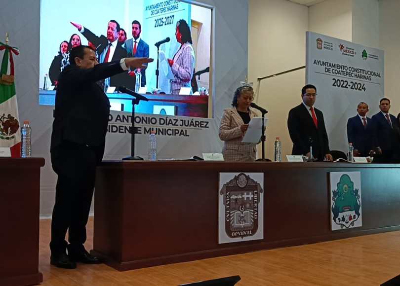 Marco Antonio Díaz Juárez tomó protesta de ley como presidente municipal de Coatepec Harinas para el periodo 2025-2027, en sesión solemne de Cabildo presidida por Eugenia Rojano, representante de la gobernadora Delfina Gómez Álvarez.