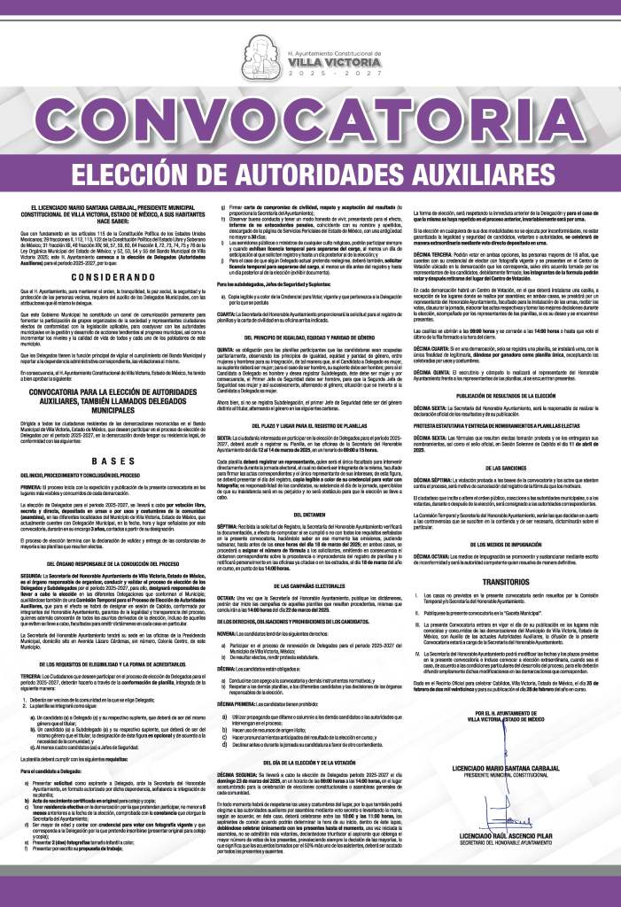 04/03/2025 ESTADO DE MÉXICO / ESTATAL / MUNICIPIOS / NACIONAL CONVOCATORIA PARA ELECCIÓN DE AUTORIDADES AUXILIARES: VILLA VICTORIA Publicado por Redacción Compártir Haz clic para compartir en Facebook (Se abre en una ventana nueva) Facebook Haz clic para compartir en X (Se abre en una ventana nueva) X Haz clic para compartir en WhatsApp (Se abre en una ventana nueva) WhatsApp Relacionado