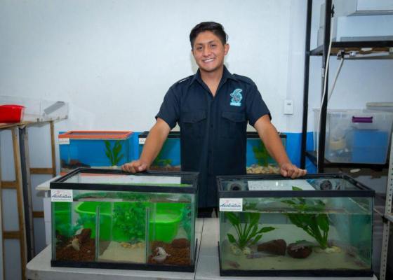 Hace cuatro años, Carlos Andrés Rodríguez Villegas inició la conservación de una pareja de ajolotes, a los cuales dotó de